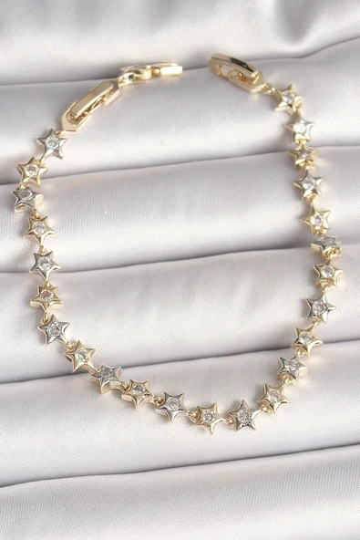 Pirinç Mix Renk Zirkon Taşlı Yıldız Model VIP Seri Kadın Bileklik