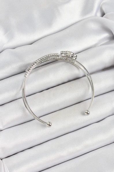 Pirinç Karışık Zirkon Taşlı Çiçek Model Gümüş Renk Altı Açık Kadın Bileklik