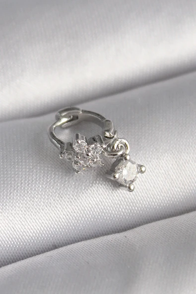 316L Çelik Gümüş Renk Zirkon Taşlı Çiçek Model Sallantı Detay Tragus Piercing