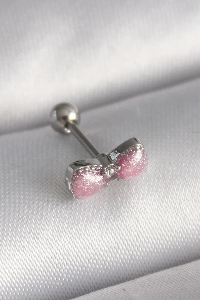 316L Çelik Gümüş Renk Pembe Kelebek Model Tragus Piercing