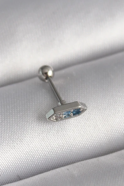 316L Çelik Gümüş Renk Mavi Zirkon Taşlı Tragus Piercing