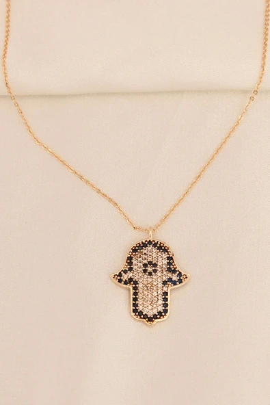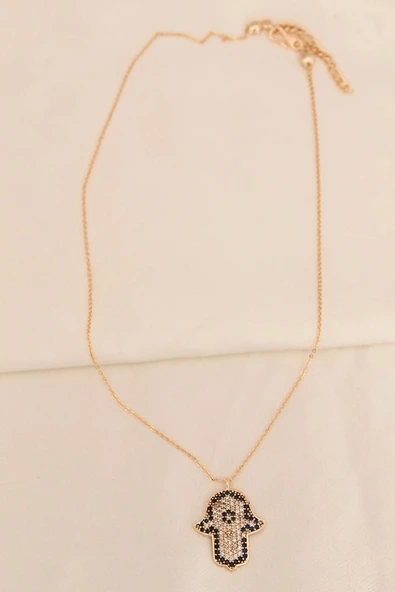 Gold Renk Metal Minimal Taşlı Fatma Ana Eli Figürlü Kolye