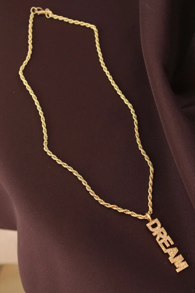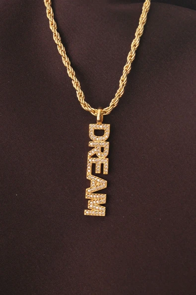Altın Renk Zirkon Taşlı Rüya Yazılı Kolye