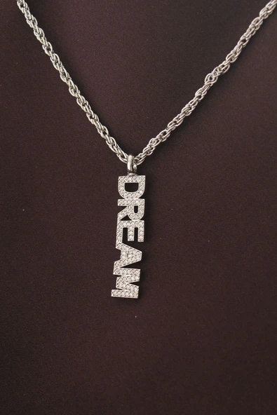 Gümüş Renk Zirkon Taşlı Rüya Yazılı Kolye