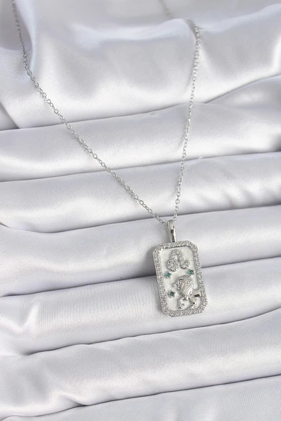 316L Çelik Gümüş Renk Zincir İkizler Burcu Zirkon Taşlı Kadın Kolye