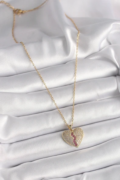 316L Çelik Gold Renk Zincir Zirkon Taşlı Kalp Model Kadın Kolye