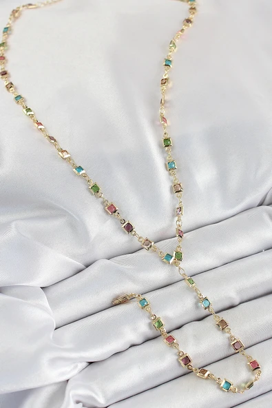 Gold Karışık Renk Zirkon Taşlı Y Pirinç Kolye
