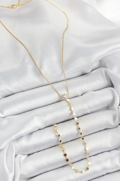 Pirinç Zirkon Taşlı Yıldız Figürlü Y Model Gold Renk Kadın Kolye