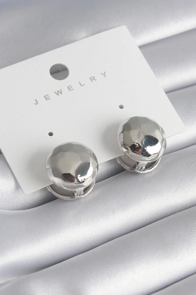 Pirinç Gümüş Renk Top Model Kadın Küpe