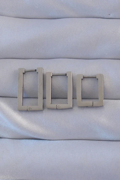 316L Çelik Gümüş Renk Dikdörtgen Küpe Seti