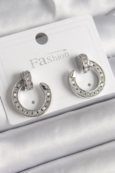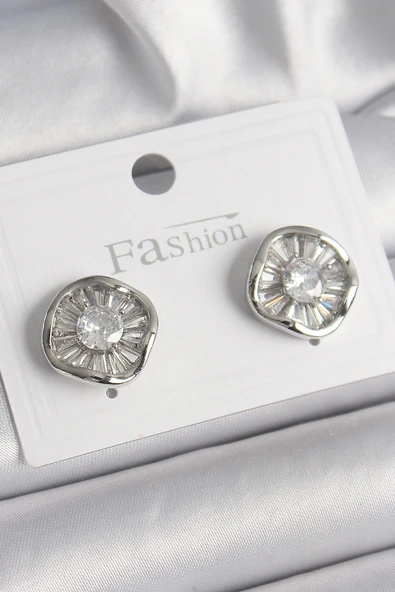 Pirinç Gümüş Renk Zirkon Taşlı Kadın Küpe