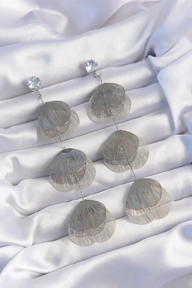 Pirinç Gümüş Renk Zirkon Taşlı Çizgi Plaka Sallantılı Küpe
