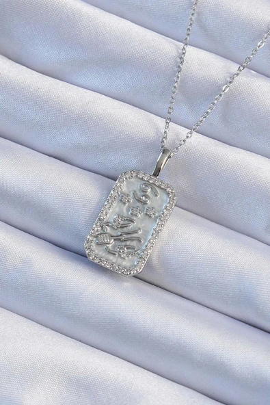 316L Çelik Zincir Gümüş Renk Zirkon Taşlı Çerçeveli Tarot Kolye
