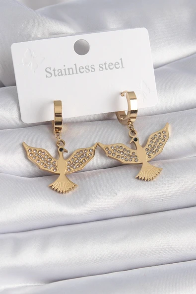 316L Çelik Gold Renk Zirkon Taşlı Anka Kuşu Model Kadın Küpe
