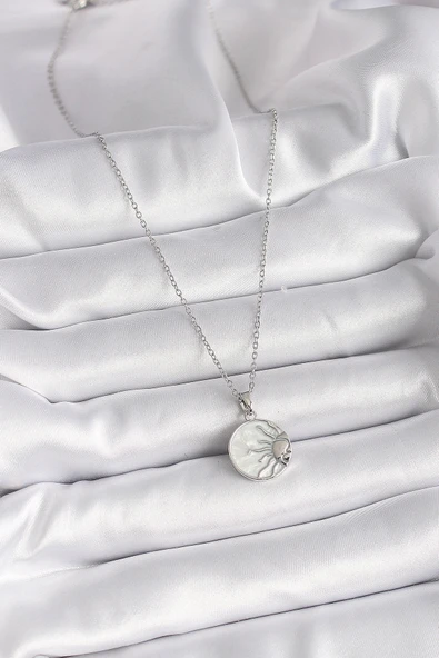 316L Çelik Gümüş Renk Zincir Beyaz Sedefli Gün Batımı Model Kadın Kolye