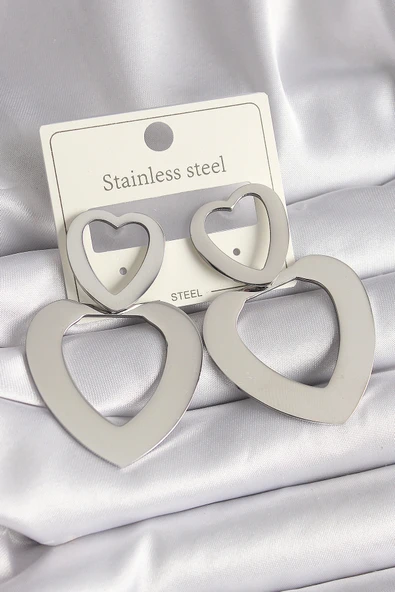 316L Çelik Gümüş Renk Kalp Model Kadın Küpe
