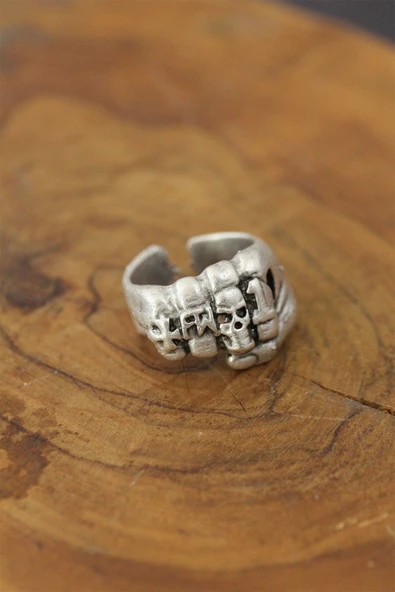 Eskitme Gümüş Renk Kuru Kafalı Erkek Ayarlamalı Yüzük