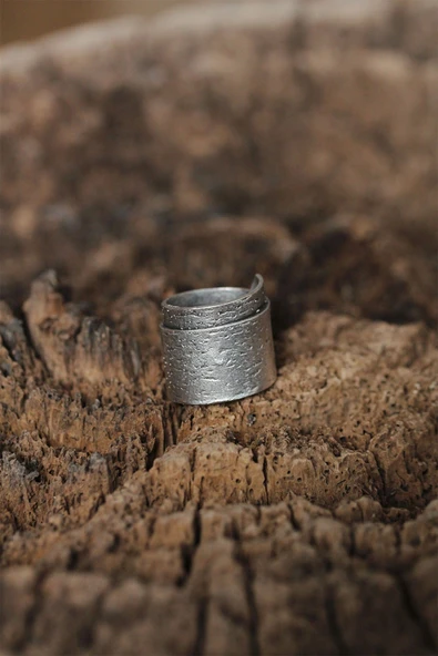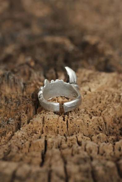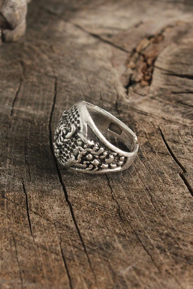 Kuru Kafa Tasarımlı Eskitme Gümüş Renkli Ayarlamalı Model Erkek Yüzük