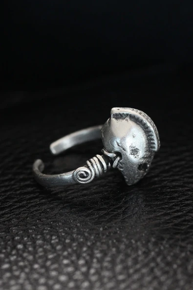 Ayarlanabilir Miğferli Kuru Kafa Tasarımlı Erkek Yüzük