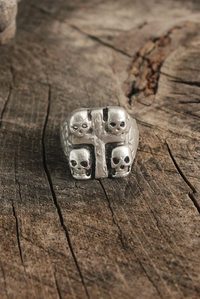 Kuru Kafalı Gümüş Renk Erkek Yüzük