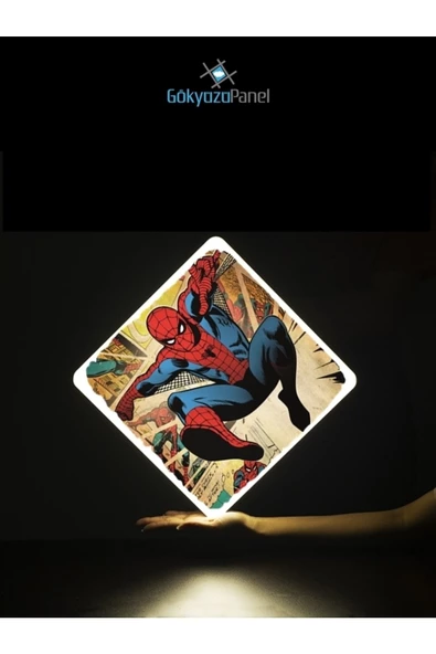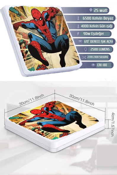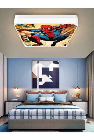 Gökyüzü Panel Spiderman-led Avize-25watt-30cm X 30cm, Çocuk Odası Avize, Avize Modelleri, Örümcek Adam Led Avize