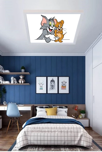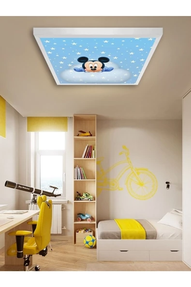 Gökyüzü Panel Disney Çocuk Odası Led Avize-60x60 Baskılı Led Avize- Beyaz Çerçeve-led Işık-54w Homojen Dağılım