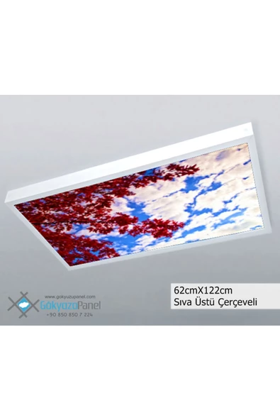 Gökyüzü Panel 60x120 Gökyüzü Panel Avize, 106watt Led, Sıva Üstü, Kolay Montaj Led Panel, Kırmızı Ağaç Avize
