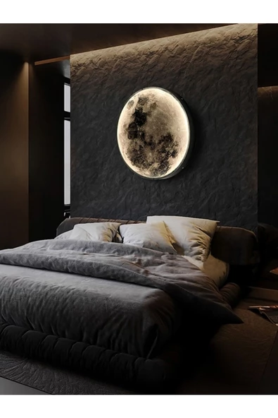 Gökyüzü Panel Moon Art, Modern Aplik, 30cm Çap,led 25watt, Led Duvar Aplikleri, Yatak Odası Aplik,yatak Başı Aplik