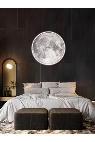 Gökyüzü Panel Moon Art, Modern Aplik, 30cm Çap,led 25watt, Led Duvar Aplikleri, Yatak Odası Aplik,yatak Başı Aplik