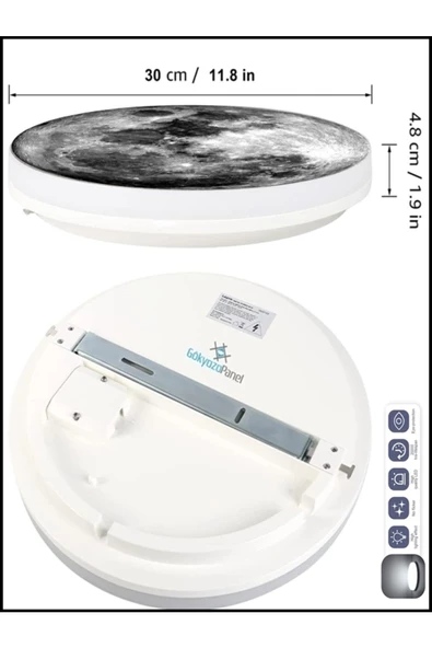 Gökyüzü Panel New-moon, Modern Aplik, 30cm Çap Led 25watt, Led Duvar Aplikleri, Yatak Odası Aplik, Aplik Modelleri