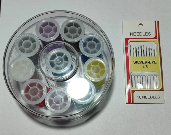 HAGİKİ (2Lİ SET) DİKİŞ İPLİĞİ VE DİKİŞ İĞNESİ , MİKA KUTULU 10ADETLİ İPLİK VE 10 ADETLİ İĞNE SETİ