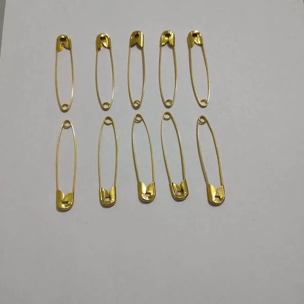 HAGİKİ (10 ADETLİ) 4,5CM UZUNLUĞUNDA NO 3 SARI ÇENGELLİ İĞNE,GOLD RENKLİ ÇATAL İĞNE,BÜYÜK BOY