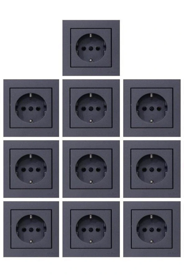 Grano Füme Topraklı Priz 10 Adet Çerçeve Dahil