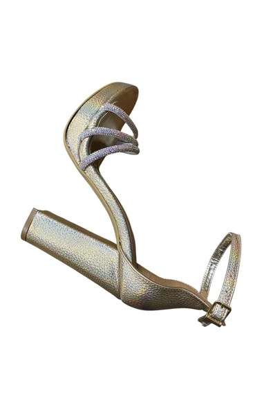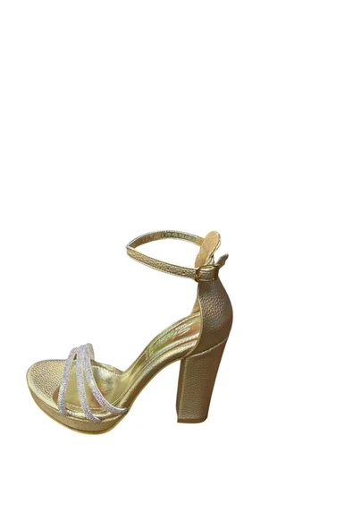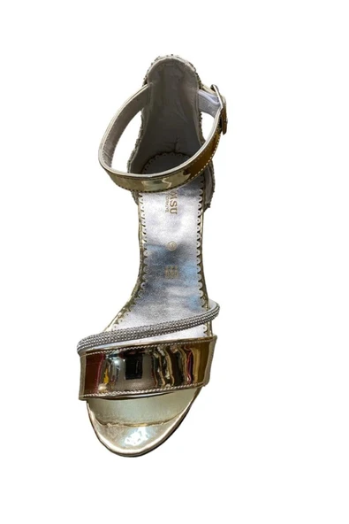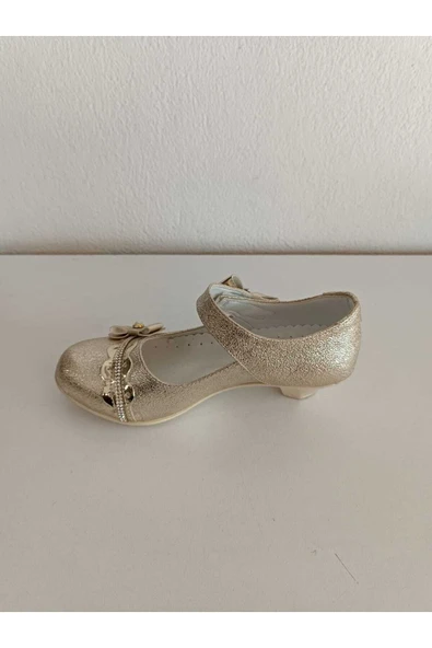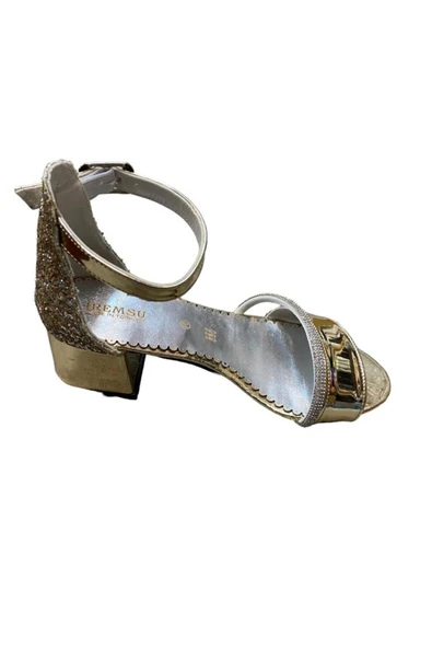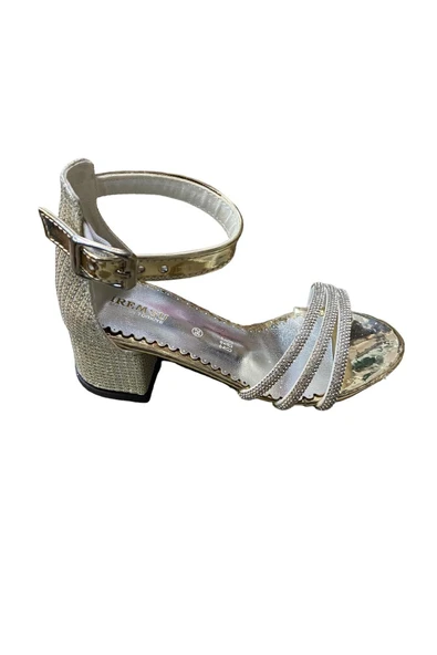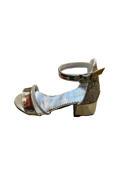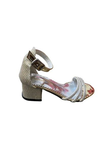 Anıl Kız Çocuk Altın Topuklu Taşlı Abiye Ayakkabı