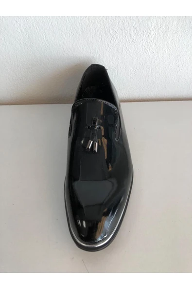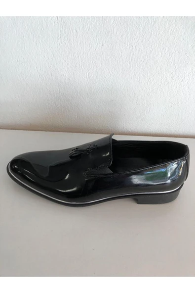 güven kundura Erkek Çizgili Rugan Hakiki Deri Ayakkabı