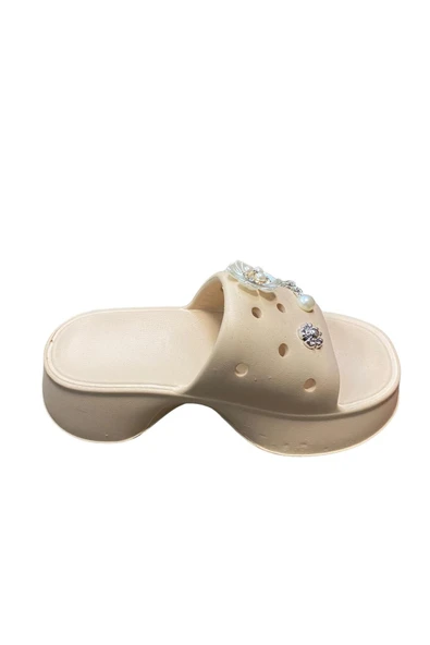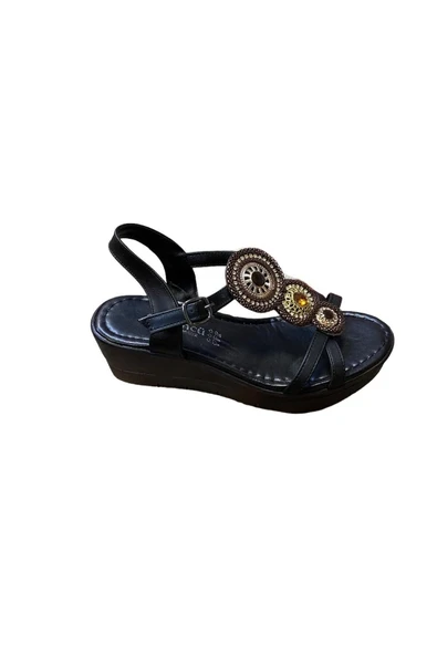 Şık Öncü Kadın Dolgu Topuklu Taşlı Yazlık Ayakkabı