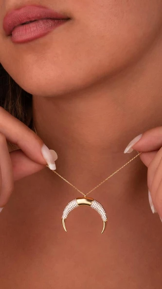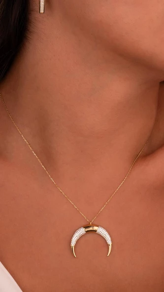 14 Ayar Altın Yarım Ay Kolye