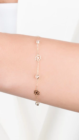 Beyaz Taşlı Yaşam Çiçeği Minimal Altın Bileklik
