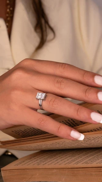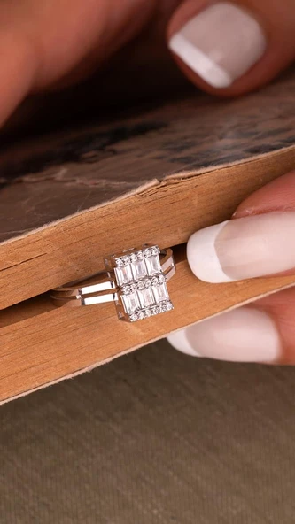 14 Ayar Beyaz Altın Baget Yüzük