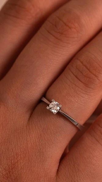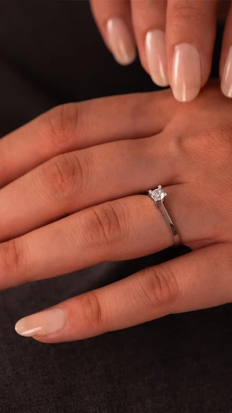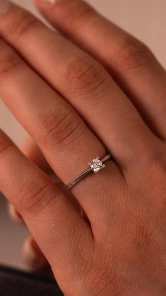 Minimal 14 Ayar Beyaz Altın Tektaş Yüzük