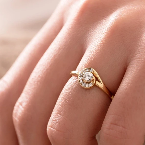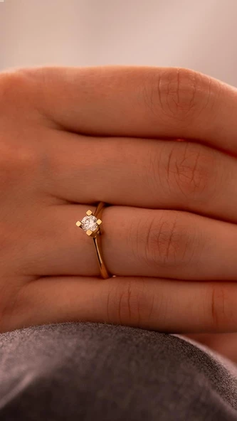 14 Ayar Taşlı Minimal Altın Yüzük