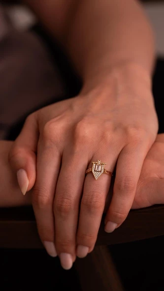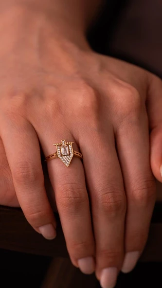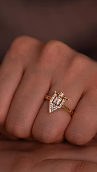 Beyaz Taşlı Üçgen 14 Ayar Altın Yüzük