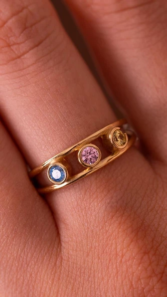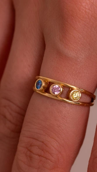 3 Renkli Taşlı 14 Ayar Altın Yüzük