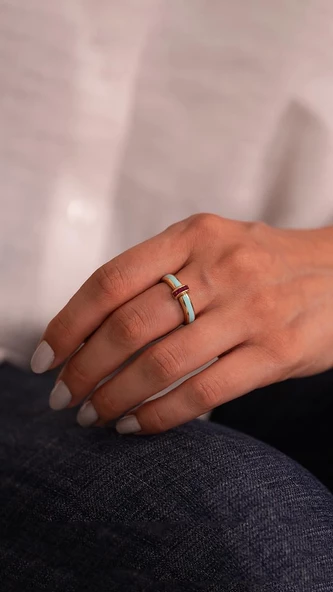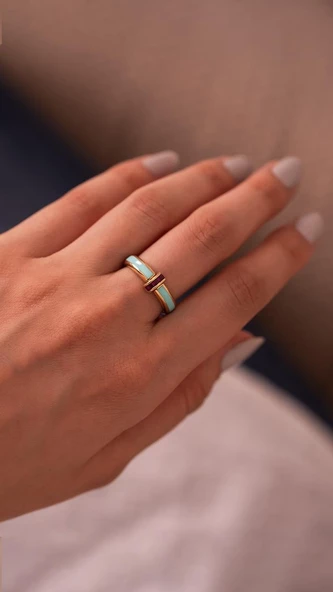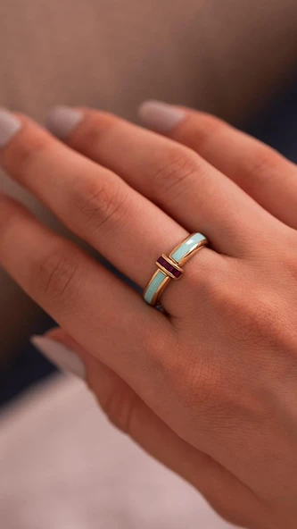 Minima Turkuaz Mineli 14 Ayar Altın Yüzük