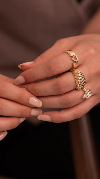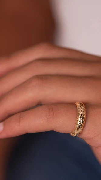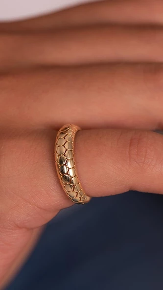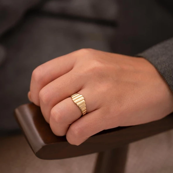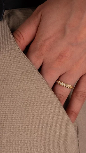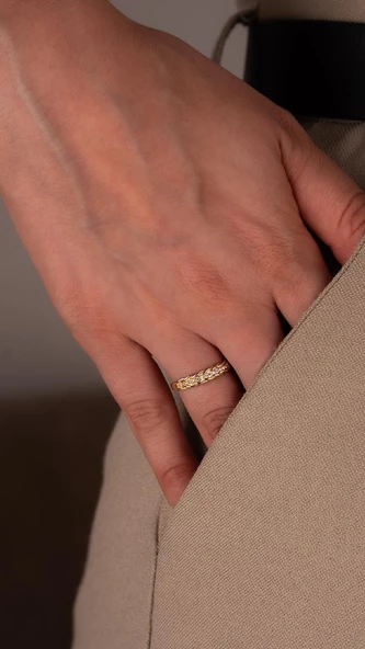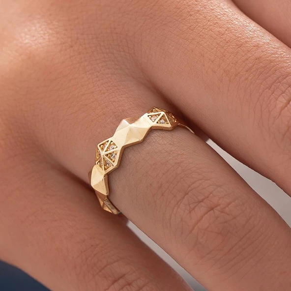 Dokulu Tasarım 14 Ayar Altın Yüzük