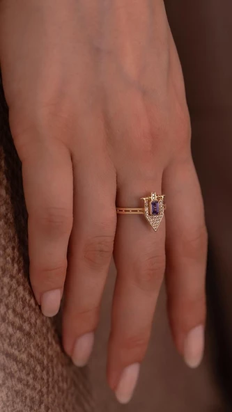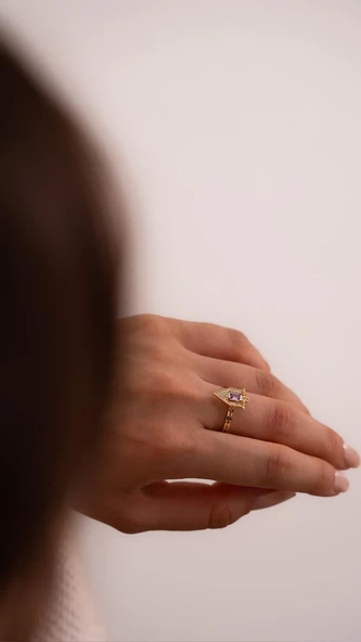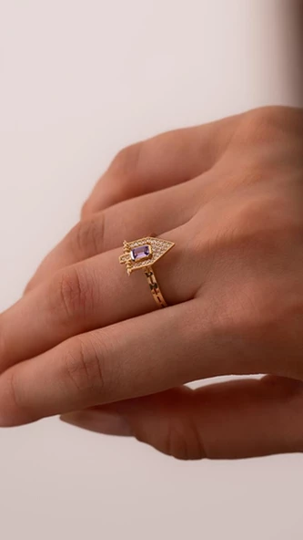 Mor Taşlı 14 Ayar Altın Yüzük
