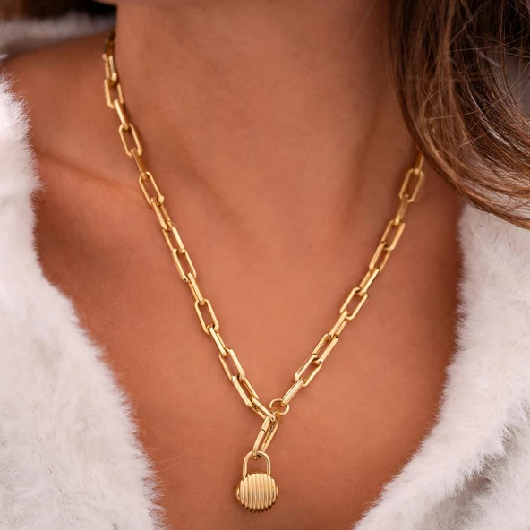 Çanta Kilit Model Ataç Kolye 14 Ayar Altın