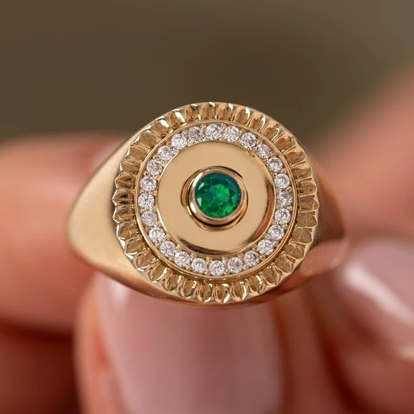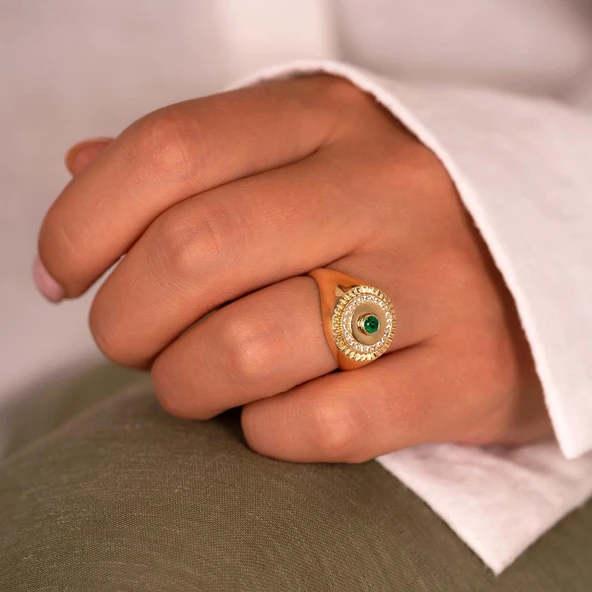 Yeşil Taşlı Tasarım 14 Ayar Yüzük