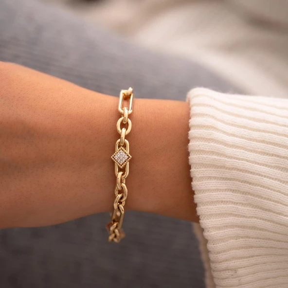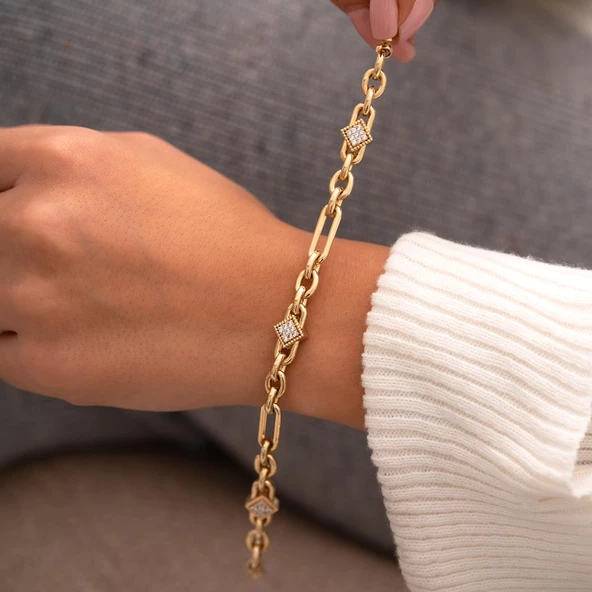 Dörtgen Taşlı Tasarım 14 Ayar Altın Bileklik