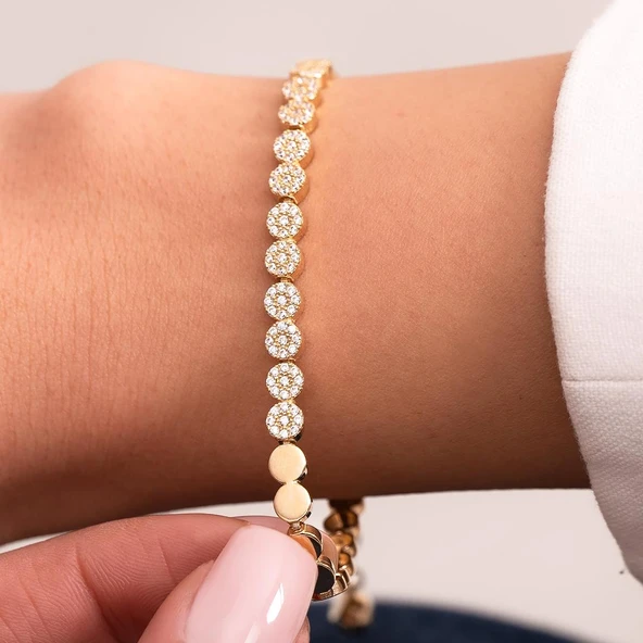 Ortası Taşlı Daire Model 14 Ayar Altın Bileklik